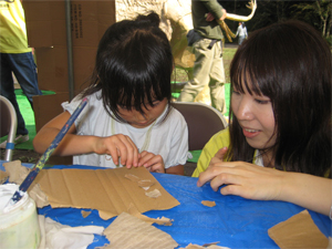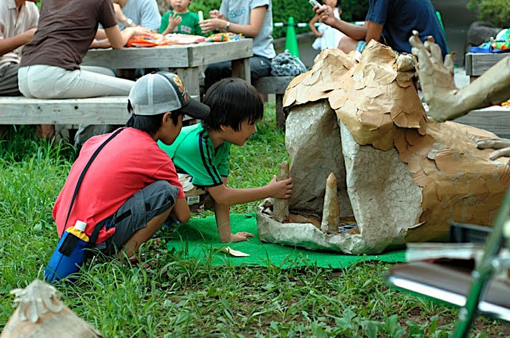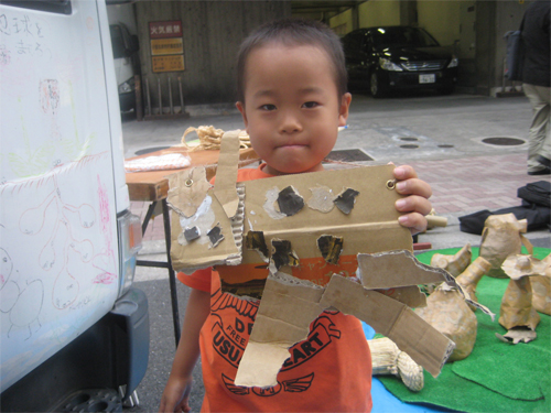 10月10、11日(土日)お茶の水アートピクニックでの「たまちゃんダンボール動物園」に出品する子供たちの作品をワークショップで作りました♪