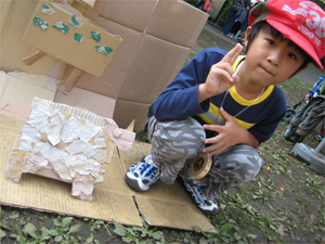 9月20日(日)金沢文庫芸術祭での「たまちゃんダンボール動物園」に出品する子供たちの作品をワークショップで作りました♪